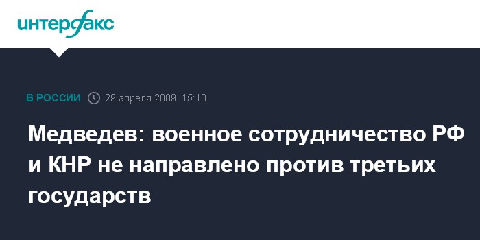 Медведев: военное сотрудничество РФ и КНР не направлено против третьих государств