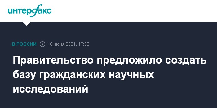 Москва. 10 июня. INTERFAX.RU - Правительство внесло в Госдуму законопроект № 1191150-7 о создании в России единой госсистемы учета научных работ гражданского назначения. Он содержит поправки в закон о науке и госполитике в сфере науки и техники.