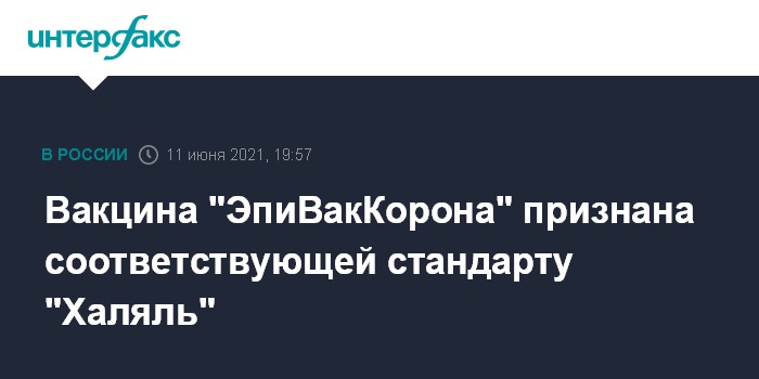 "Для изучения соответствия вакцины стандарту "Халяль" производитель предоставил всю необходимую информацию о компонентах вакцины и технологии ее производства. (...) На основании представленных документов специалистами МЦСиС "Халяль" принято заключение о соответствии вакцины "ЭпиВакКорона" стандарту "Халяль" Духовного управления мусульман и Совета муфтиев России", - говорится в сообщении, опубликованном на сайте организации в пятницу.