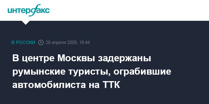 Москва. 29 апреля. INTERFAX.RU - В центре Москвы задержаны трое граждан Румынии, ограбившие на третьем транспортном кольце российского автомобилиста, сообщили "Интерфаксу" в пресс-службе УВД по ЦАО в среду.