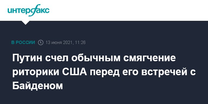 Путин счел обычным смягчение риторики США перед его встречей с Байденом