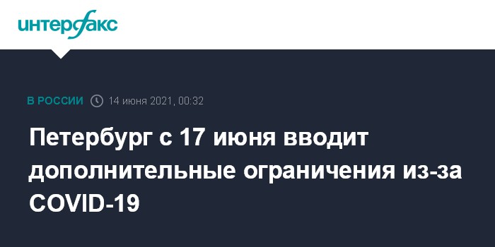 Петербург с 17 июня вводит дополнительные ограничения из-за COVID-19