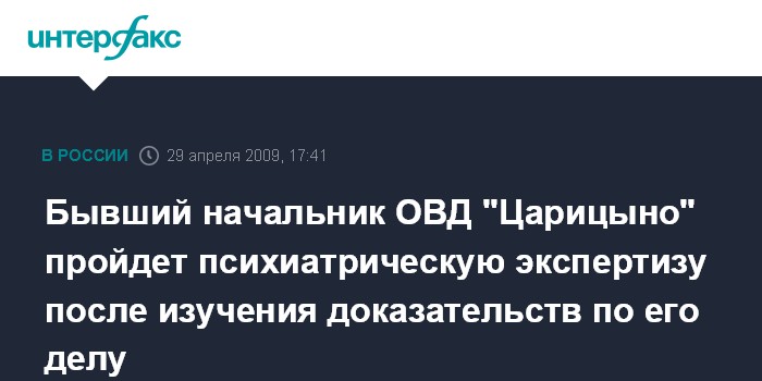 Бывший начальник ОВД "Царицыно" пройдет психиатрическую экспертизу после изучения доказательств по его делу