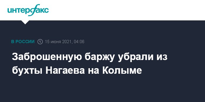 Москва. 15 июня. INTERFAX.RU - Утилизация заброшенных и затонувших судов началась в Магаданской области, в бухте Нагаева убрали проржавевшую баржу в районе видовой площадки "Пирс", сообщает во вторник пресс-служба регионального правительства.
