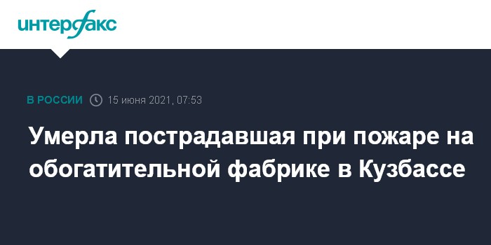 Умерла пострадавшая при пожаре на обогатительной фабрике в Кузбассе