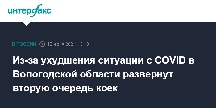 Из-за ухудшения ситуации с COVID в Вологодской области развернут вторую очередь коек