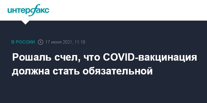 Москва. 17 июня. INTERFAX.RU - Вакцинация от COVID-19 должна стать обязательной на фоне роста числа заболевших в стране, считает президент национальной медицинской палаты и НИИ неотложной детской хирургии и травматологии Леонид Рошаль.