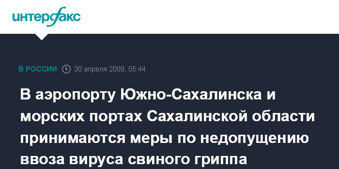 В аэропорту Южно-Сахалинска и морских портах Сахалинской области принимаются меры по недопущению ввоза вируса свиного гриппа