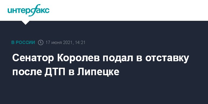 Сенатор Королев подал в отставку после ДТП в Липецке