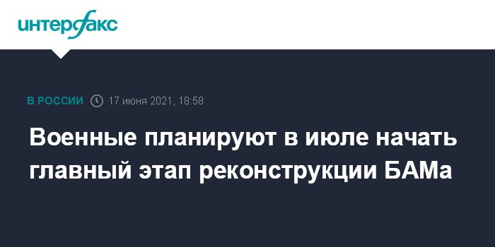 Москва. 17 июня. INTERFAX.RU - Российские военные в июле планируют начать главный этап работ по реконструкции Байкало-амурской железнодорожной магистрали (БАМ).