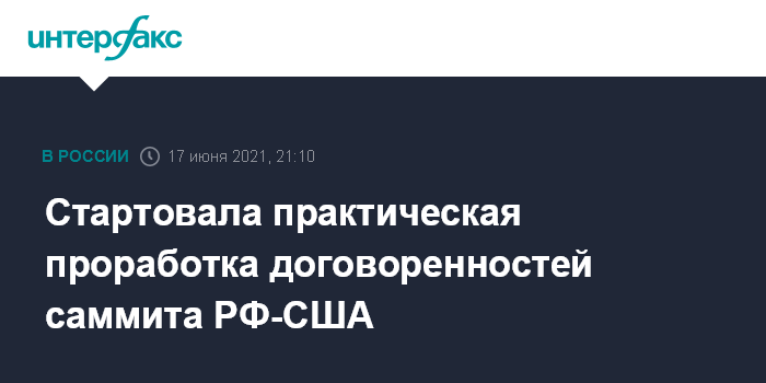 Переговоры Путина и Байдена состоялись накануне, 16 июня, в Женеве. На пресс-конференции по их итогам президент РФ, в частности, сообщил, что договорился с американским коллегой о взаимном возвращении послов в столицы двух стран и о начале двусторонних консультаций по кибербезопасности.