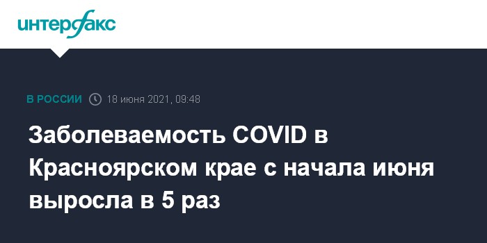 Москва. 18 июня. INTERFAX.RU - В Красноярском крае с начала июня отмечается пятикратный рост числа зараженных коронавирусом, сообщила на заседании Горсовета Красноярска консультант Минздрава региона Наталья Бахарева.