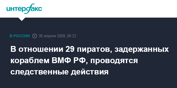 В отношении 29 пиратов, задержанных кораблем ВМФ РФ, проводятся следственные действия