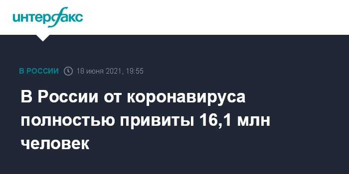 Москва. 18 июня. INTERFAX.RU - В России в настоящее время первым компонентом вакцины от коронавируса привиты 19,7 млн граждан, обоими компонентами препарата – 16,1 млн человек. Об этом сообщила вице-премьер РФ Татьяна Голикова на брифинге в пятницу.
