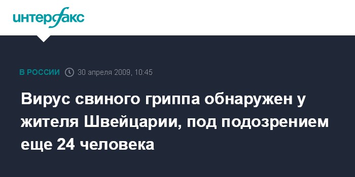 Вирус обнаружен у мужчины, проживающего в городе Бадене, в кантоне Аргау. Недавно этот человек вернулся из Мексики, где была зафиксирована первая вспышка свиного гриппа.