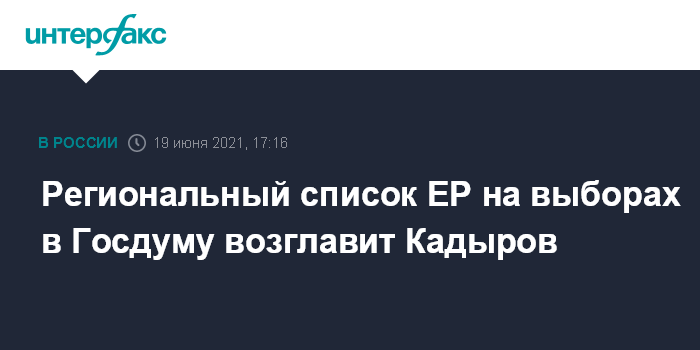 Региональный список ЕР на выборах в Госдуму возглавит Кадыров