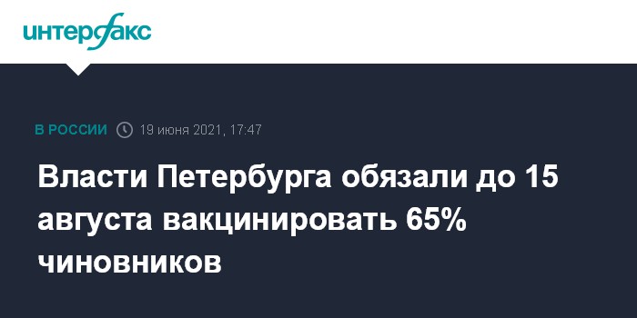 Власти Петербурга обязали до 15 августа вакцинировать 65% чиновников
