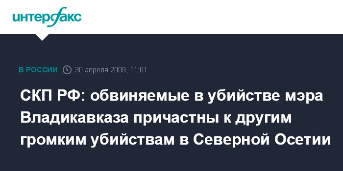 СКП РФ: обвиняемые в убийстве мэра Владикавказа причастны к другим громким убийствам в Северной Осетии