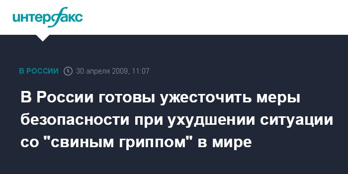Москва. 30 апреля. INTERFAX.RU - Российские медики готовы усилить санитарные меры в связи со "свиным гриппом" в зависимости от ситуации с этим заболеванием, которая будет складываться в мире. "Мы ведем мониторинг ситуации, и в зависимости от ее изменения будем корректировать меры. Наши меры адекватны объявленному ВОЗ уровню опасности", - сказал "Интерфаксу" в четверг руководитель Роспотребнадзора, главный государственный санитарный врач РФ Геннадий Онищенко.