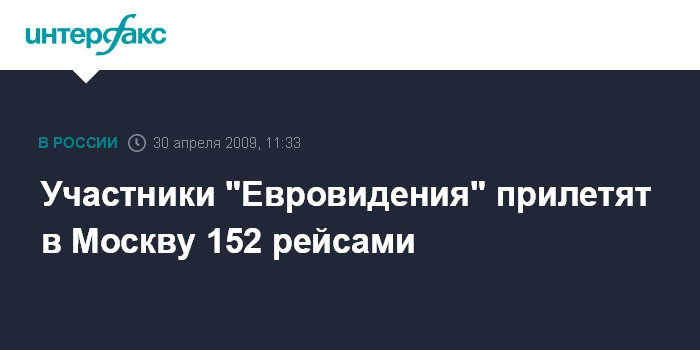 Москва. 30 апреля. INTERFAX.RU - Официальные делегации конкурса "Евровидение-2009" начнут прибывать в Москву 2 мая, сообщил заместитель мэра Москвы, руководитель рабочей группы по организации конкурса Валерий Виноградов на пресс-конференции в центральном офисе "Интерфакса" в четверг. "42 делегации (а это самое большое количество, которое когда-либо было на конкурсе) прибудут в Москву 152 рейсами, в основном, в Шереметьево и Домодедово. Некоторые приедут в Москву на поездах", - уточнил он.