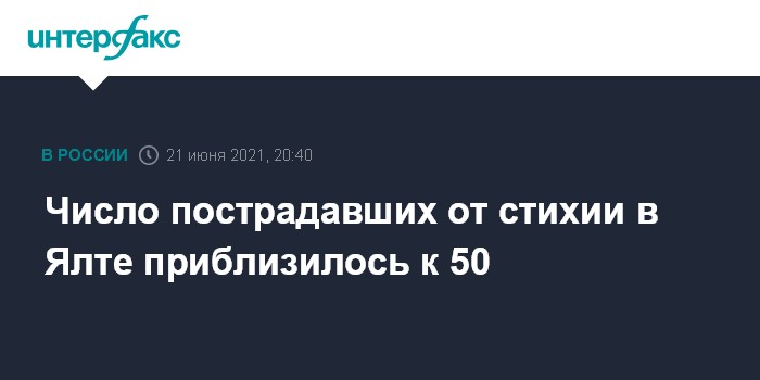 Москва. 21 июня. INTERFAX.RU - Помощь медиков понадобилась 49 пострадавшим из-за подтопления Ялты сильным ливнем, сообщила в понедельник вечером глава администрации города Янина Павленко.