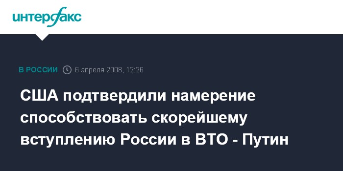 США подтвердили намерение способствовать скорейшему вступлению России в ВТО - Путин