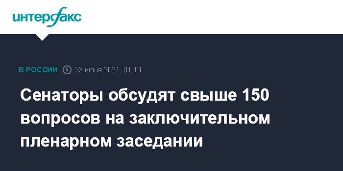 Москва. 23 июня. INTERFAX.RU - Совет Федерации проведет в среду заключительное пленарное заседание весенней сессии парламента, в повестке которого будет свыше 150 вопросов.