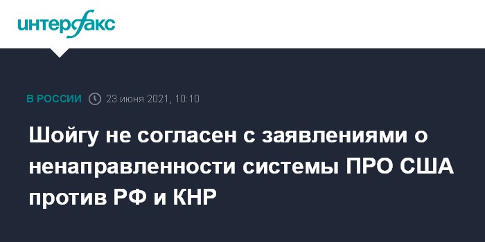 Москва. 23 июня. INTERFAX.RU - Заявления о ненаправленности против России и Китая глобальной системы ПРО США не выдерживают критики, заявил министр обороны РФ Сергей Шойгу.