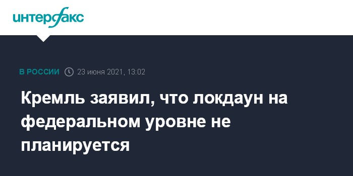 Москва. 23 июня. INTERFAX.RU - Вопрос о введении локдауна из-за ухудшения в РФ ситуации с коронавирусом на федеральном уровне не обсуждается, у Кремля нет информации, что его рассматривает кто-то из руководителей регионов, сообщил журналистам пресс-секретарь президента Дмитрий Песков.