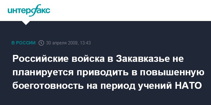 "Предстоящие натовские учения в Грузии не будут способствовать стабильности в Закавказье, скорее наоборот. Но приводить войска, дислоцирующиеся в этом регионе, в повышенную степень боеготовности не планируется", - сказал собеседник агентства.
