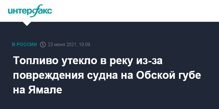 Москва. 23 июня. INTERFAX.RU - Дизтопливо из судна попало в реку на Обской губе в Ямало-Ненецком автономном округе в среду, сообщает пресс-служба Уральской транспортной прокуратуры.