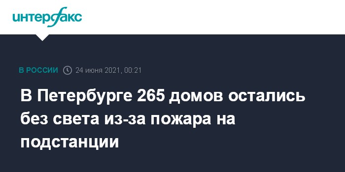Москва. 24 июня. INTERFAX.RU - Специалисты ПАО "Россети Ленэнерго " восстанавливают электроснабжение Калининского и Красногвардейского районов Петербурга, нарушенное из-за срабатывания аварийной защиты и пожара на подстанции (ПС) 220 кВ "Ручьи".