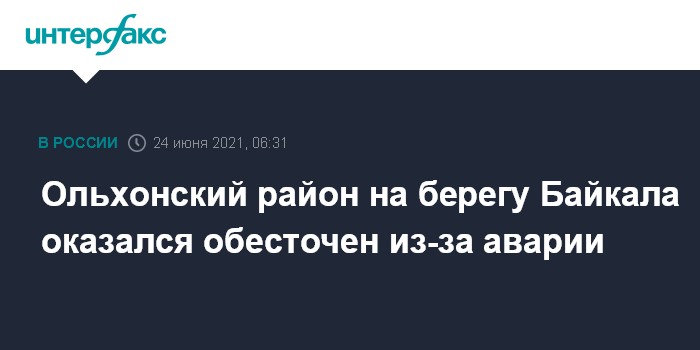 Москва. 24 июня. INTERFAX.RU - Аварийное отключение электроснабжения произошло в четверг в Ольхонском районе на побережье озера Байкал в Иркутской области, сообщила "Иркутская электросетевая компания" в соцсетях.