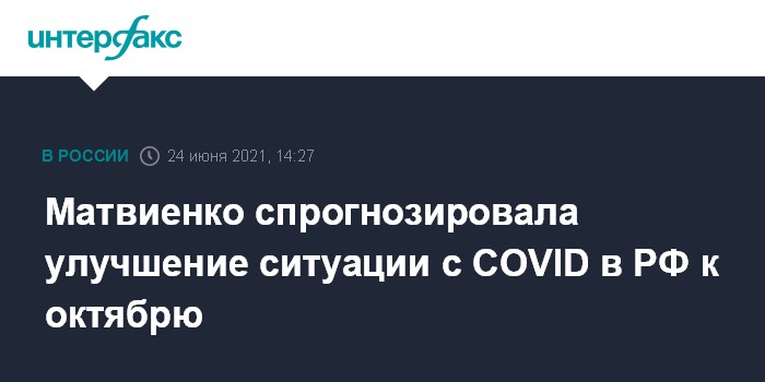 Москва. 24 июня. INTERFAX.RU - Спикер Совета Федерации Валентина Матвиенко ожидает, что к октябрю ситуация с коронавирусом в РФ улучшится.
