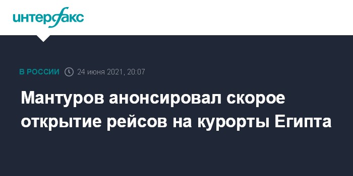 Москва. 24 июня. INTERFAX.RU - Глава Минпромторга РФ Денис Мантуров анонсировал скорое открытие чартерных рейсов на курорты Египта.
