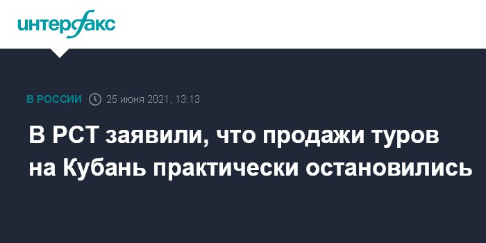 Москва. 25 июня. INTERFAX.RU - Продажи туров в Краснодарский край практически остановились после появления распоряжения губернатора о заселении в отели до 1 августа со справкой о ПЦР-тесте и сертификатом о вакцинации, а после 1 августа - только с сертификатом, сообщила порталу "Интерфакс-Туризм" в пятницу пресс-секретарь Российского союза туриндустрии (РСТ) Ирина Тюрина.