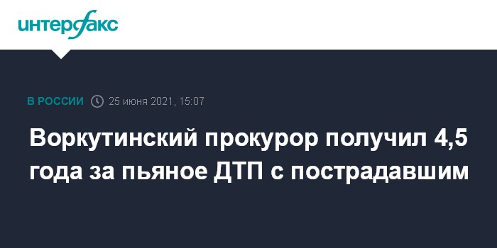 Москва. 25 июня. INTERFAX.RU - Воркутинский городской суд признал бывшего воркутинского транспортного прокурора Алексея Абрамова виновным в нарушении ПДД в состоянии опьянения с причинением тяжкого вреда здоровью. Об этом сообщает пресс-служба прокуратуры Коми.