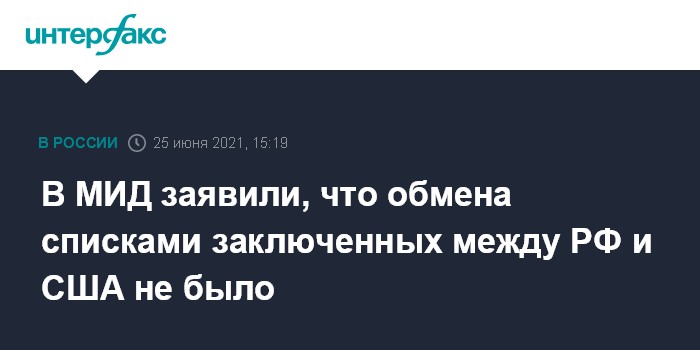 Москва. 25 июня. INTERFAX.RU - Россия и США не обменивались списками заключенных, которых можно было бы вернуть для отбывания наказания на родину, заявил замглавы МИД РФ Сергей Рябков.
