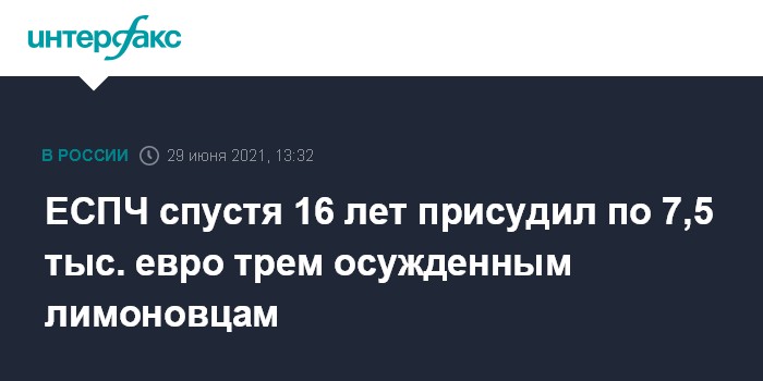 ЕСПЧ спустя 16 лет присудил по 7,5 тыс. евро трем осужденным лимоновцам