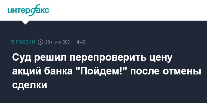 Суд решил перепроверить цену акций банка "Пойдем!" после отмены сделки