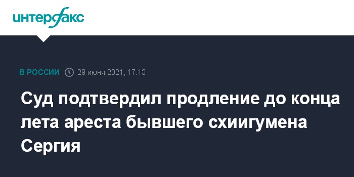 Москва. 29 июня. INTERFAX.RU - В Москве Первый апелляционный суд общей юрисдикции отклонил жалобу на продление ареста до 29 августа бывшему схиигумену Сергию (Романову), который проходит по трем уголовным статьям. Об этом "Интерфаксу" сообщили в суде.