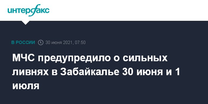 Москва. 30 июня. INTERFAX.RU - Экстренное предупреждение о непогоде распространило главное управление МЧС по Забайкальскому краю в среду.