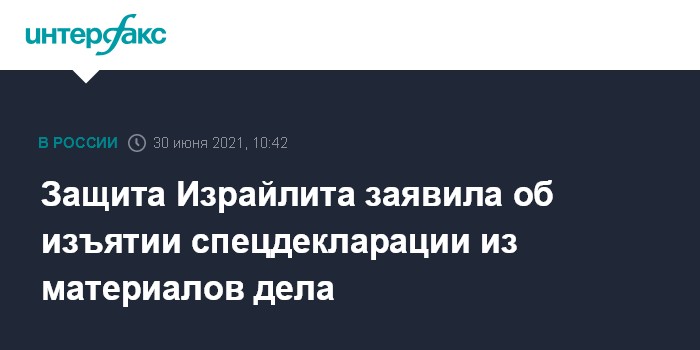 Защита Израйлита заявила об изъятии спецдекларации из материалов дела
