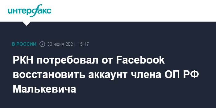 РКН потребовал от Facebook восстановить аккаунт члена ОП РФ Малькевича