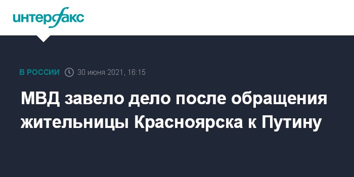 МВД завело дело после обращения жительницы Красноярска к Путину