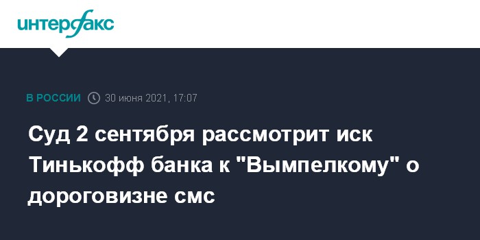 Суд 2 сентября рассмотрит иск Тинькофф банка к "Вымпелкому" о дороговизне смс