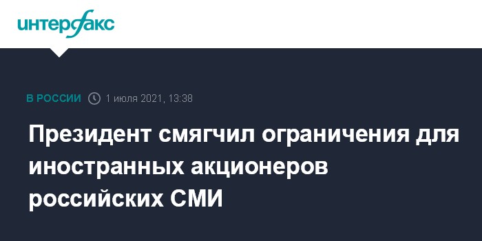 Президент смягчил ограничения для иностранных акционеров российских СМИ