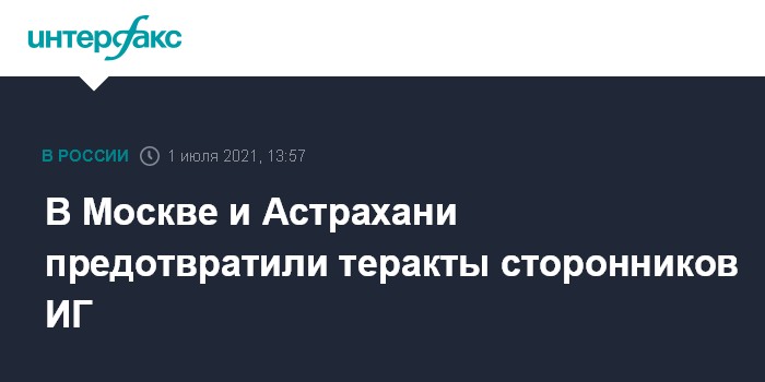 Москва. 1 июля. INTERFAX.RU - ФСБ предотвратила одновременное вооруженное нападение сторонников запрещенной в РФ террористической организации "Исламское государство" в Москве и Астрахани.