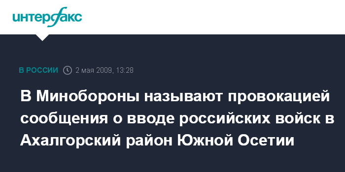 В Минобороны называют провокацией сообщения о вводе российских войск в Ахалгорский район Южной Осетии