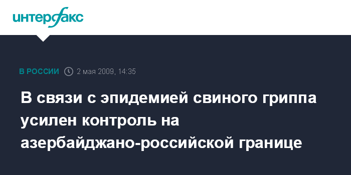 Москва. 2 мая. INTERFAX.RU – Азербайджан ввел усиленный режим работы на всех погранично-пропускных пунктах азербайджано-российской границы.